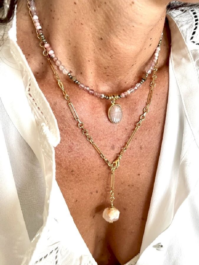 Vous pouvez le porter en collier mi long ou en sautoir cravate selon votre envie.