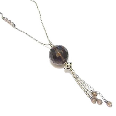 Sautoir en argent 925 et pierres naturelles, quartz fumé  En savoir plus