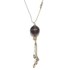 Collier sautoir ethnique en argent 925 patiné avec un pendentif en quartz fumé .