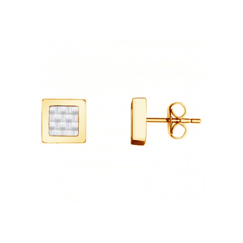 Boucles d'oreilles clous pour homme en acier 316L inoxydable PVD : Les boucles d'oreilles Cédric sont le résultat d'un élégant mélange d'acier inoxydable jaune brillant et de carbone blanc. Ces matériaux assurent leur durabilité et leur résistance face aux aléas du quotidien. Ces accessoires sont garantis 2 ans après l'achat.