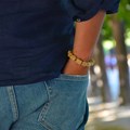 Le bracelet est réalisé à la main avec un cordon élastique noir et mesure 18cm. Il peut convenir à plusieurs tailles.