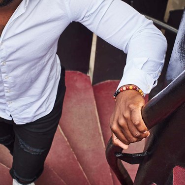 Le bracelet est réalisé à la main avec un cordon élastique noir et mesure 18cm. Il peut convenir à plusieurs tailles.