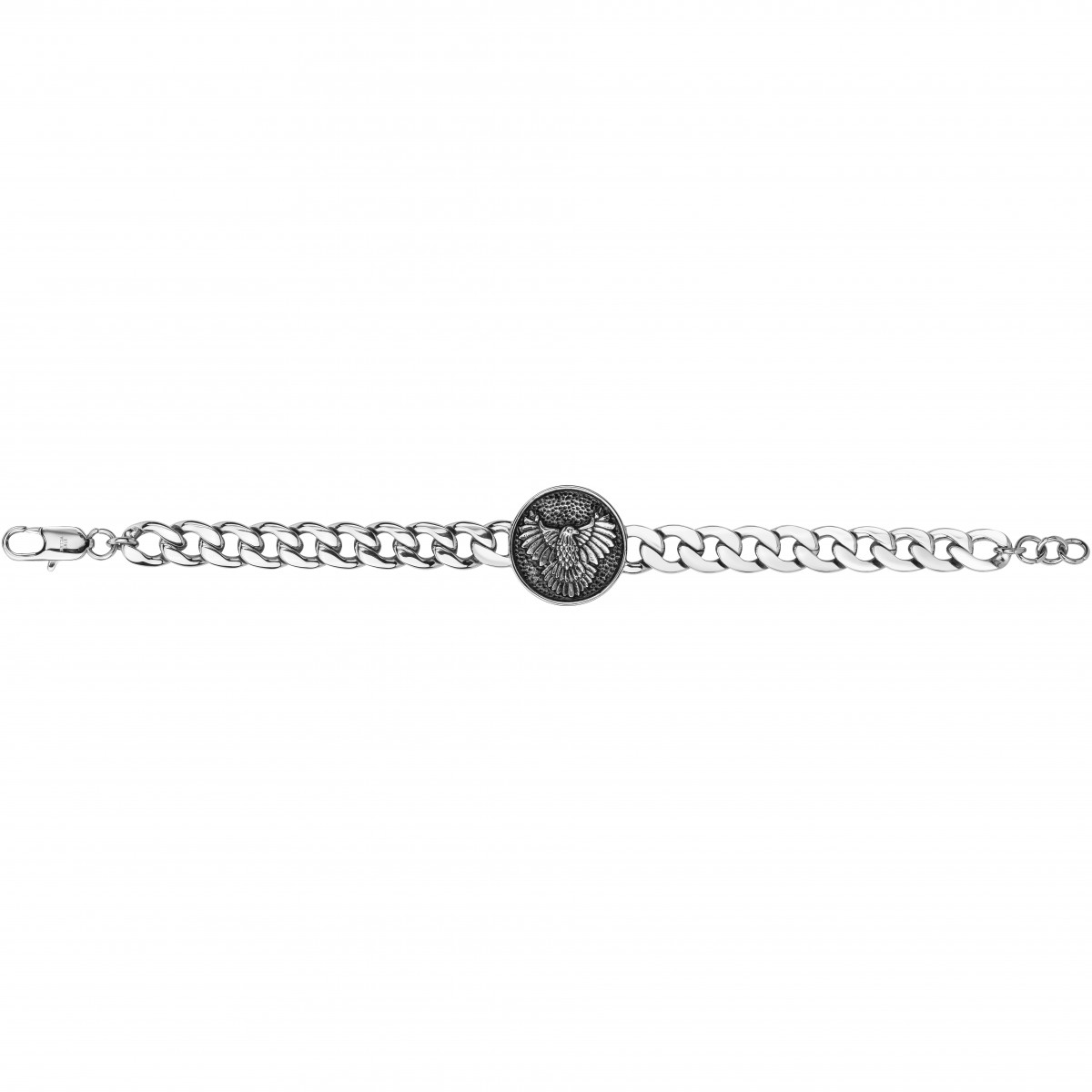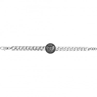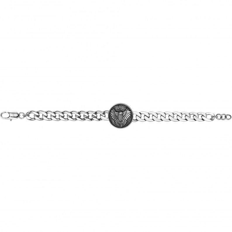Bracelet souple à chaîne gourmette et jeton avec motif aigle en acier 316L inoxydable : Ce bracelet Phebus pour homme est doté d'une chaîne à maillons de type gourmette et d'un médaillon rond gravé d'un aigle. Fabriqué en acier inoxydable et garanti deux ans, ce bracelet aigle est conçu pour durer dans le temps et être porté des années sans changer d'aspect. Il s'attache à l'aide d'un fermoir mousqueton, qui garantit confort et sécurité.
