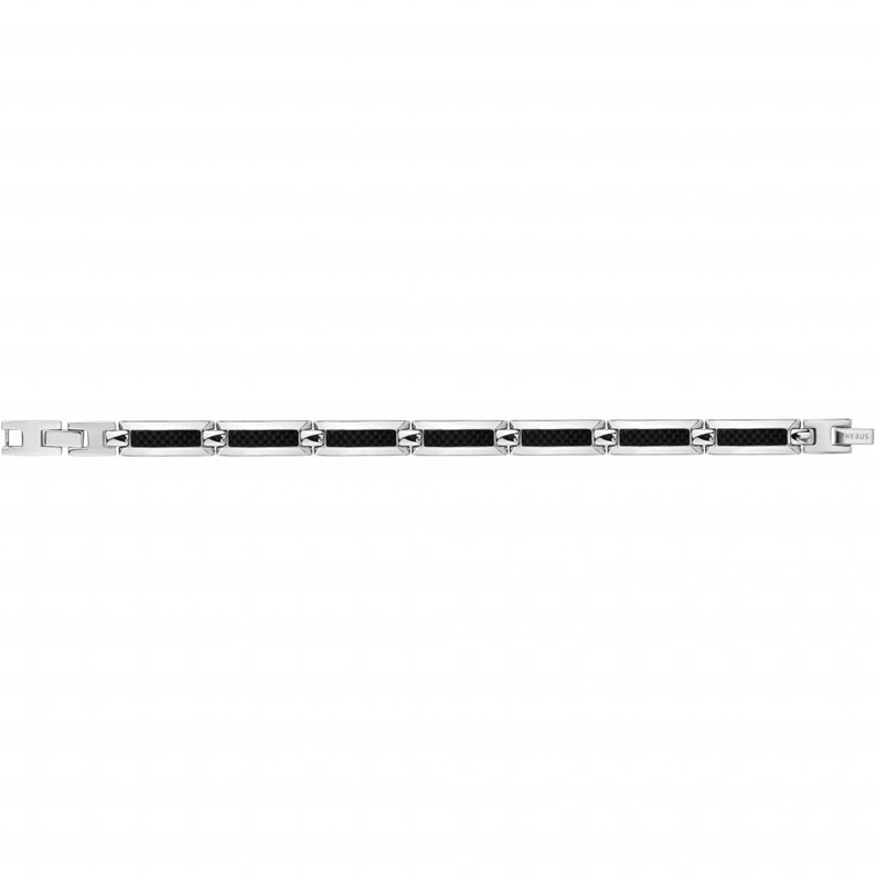 Un accessoire chic, viril, robuste et facile à porter : Ce bracelet en acier 316L inoxydable est constitué d'une série de larges maillons, habillés de motifs noirs quadrillés très tendance. Garanti 2 ans, il est fermé par un clip s'ajustant de 21,5 cm à 23 cm, une longueur idéale pour orner fièrement ton poignet.