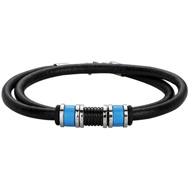Cordon souple et acier inoxydable pour un look parfaitement casual : Le bracelet Moo, composé d'acier 316L inoxydable, cumule des atouts de qualité : garanti 2 ans, il est réglable de 39 à 41 cm de longueur et sécurisé par un mousqueton pratique. L'association du cuir noir et de l'acier coloré bleu offre un bijou capable de dynamiser tes tenues du quotidien.