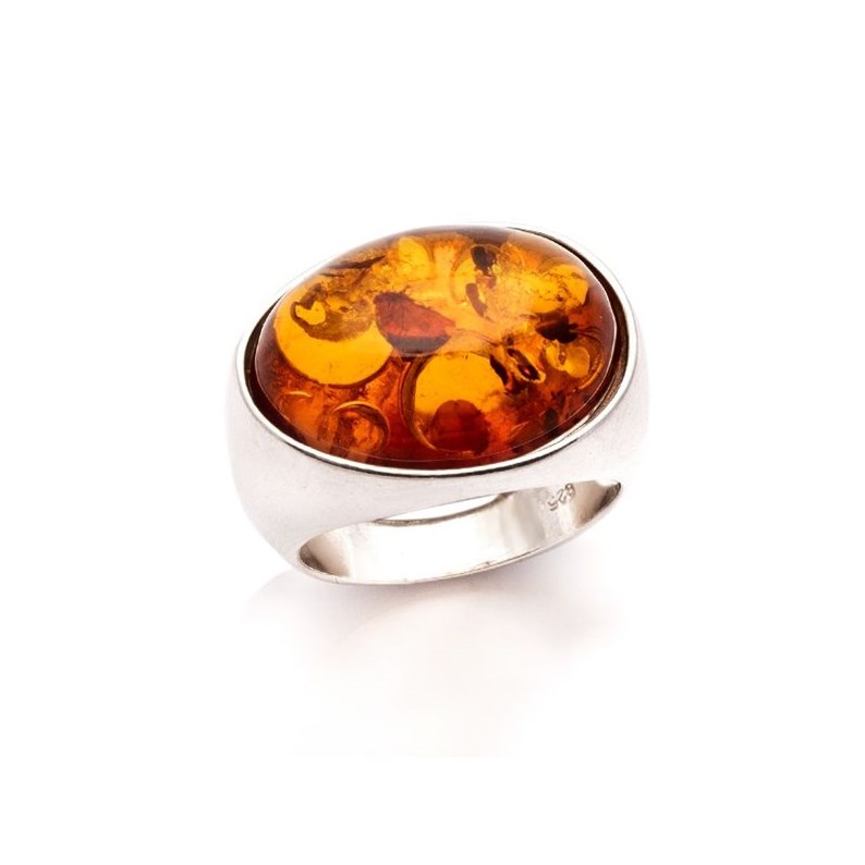 Chevalier ambre veritable de la mer Baltique argent 925/1000. Taille 68 mm  En savoir plus