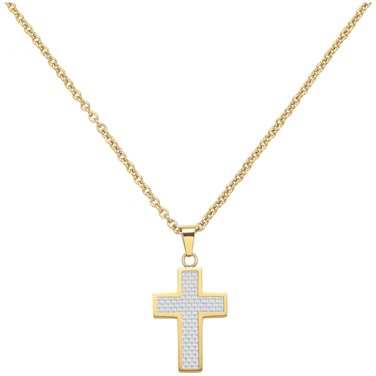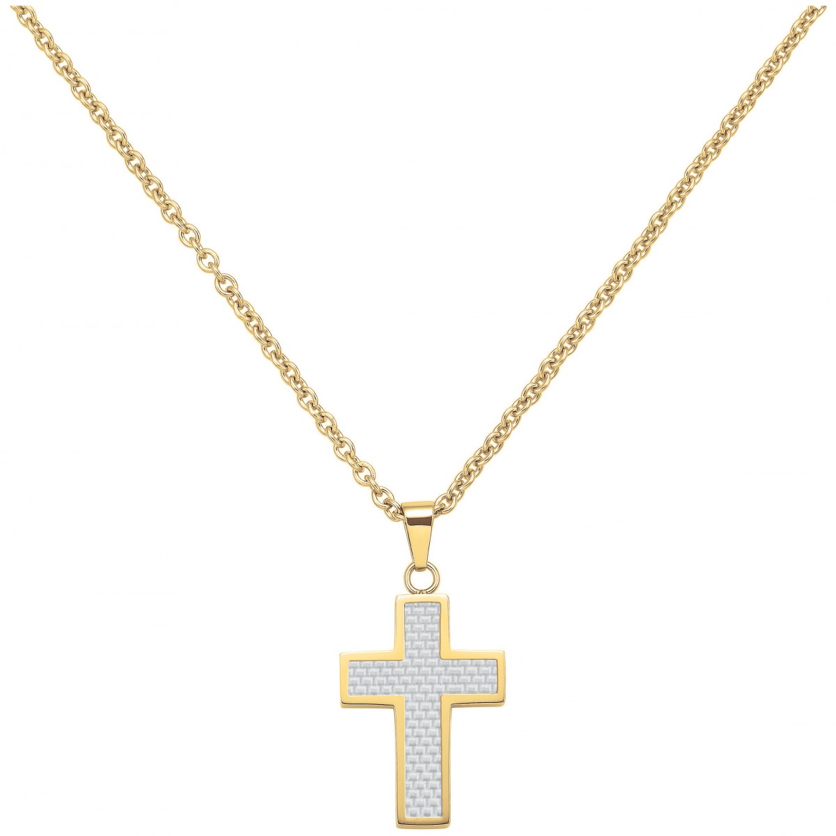 Le bijou intemporel qui en dit long sur toi : Ce collier audacieux arbore un pendentif en croix, fait d'acier 316L inoxydable jaune brillant et de carbone blanc, associé à une chaîne épaisse réglable de 50 à 55 cm et fermée par un mousqueton. Garanti 2 ans, ses textures et détails originaux te démarquent immanquablement.