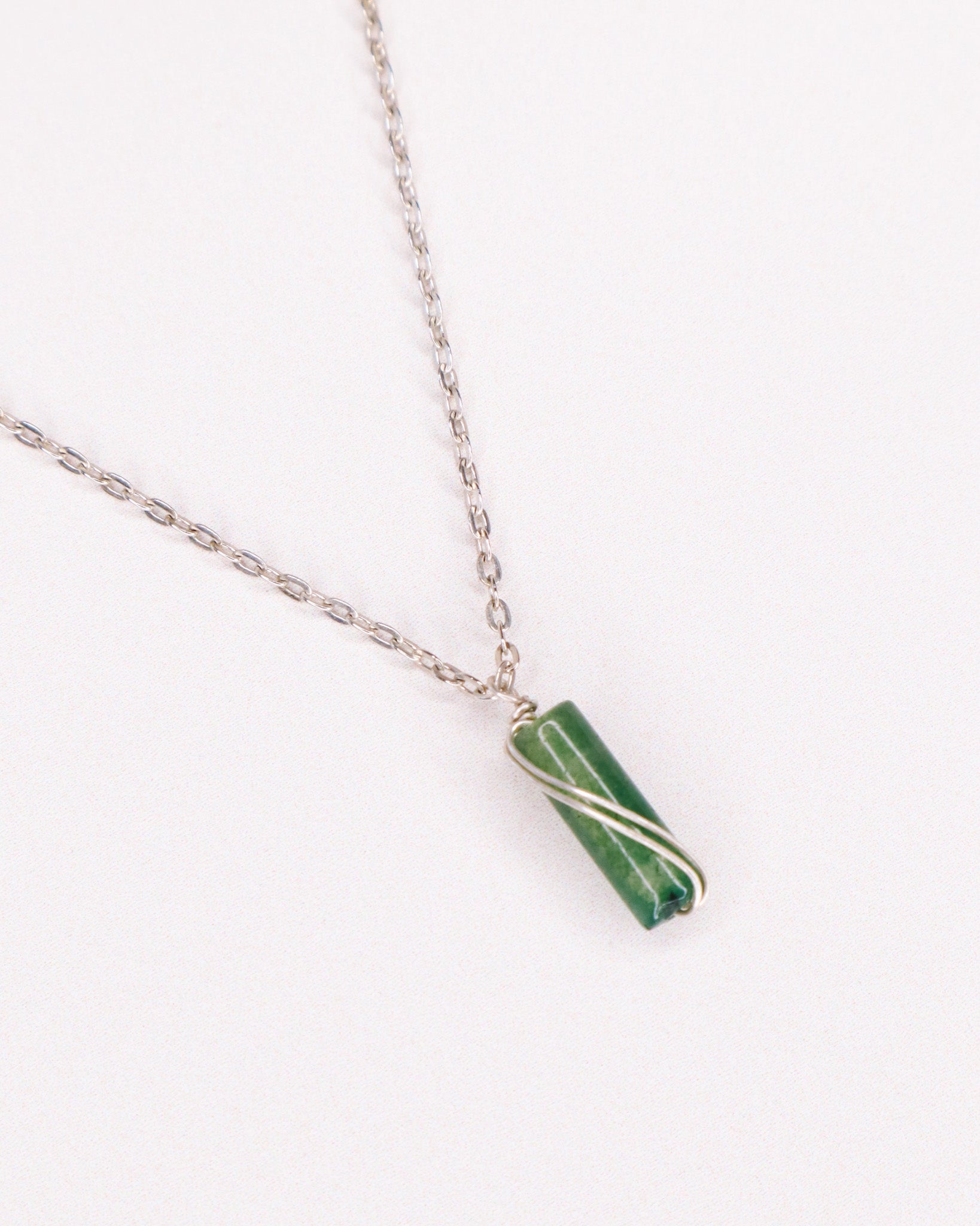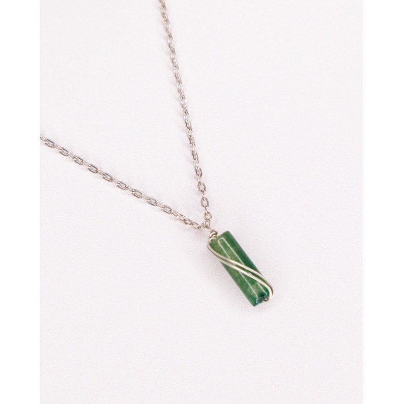 Orné d'une pierre d'agate mousse verte naturelle, entourée par une vague de fil.