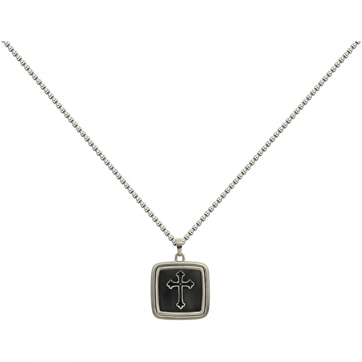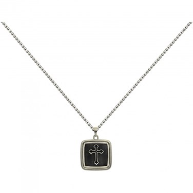 Un pendentif robuste et agréable à associer : Ce collier Jin comprend un médaillon carré au motif de croix gothique sur fond noir, dans un look 100 % vintage. Conçu en acier 316L inoxydable, il possède une chaîne réglable allant de 50 à 55 cm. Laisse-toi séduire par la composition de qualité, la durabilité et le graphisme d'un bijou original.