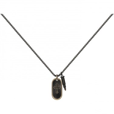 Un collier riche de sens : Avec le collier Jin de Phebus à double pendentif, arbore autour du cou une cartouche au motif de croix gothique et une balle. En acier 316L inoxydable noir et bronze, sa chaine vénitienne réglable de 50 à 55 cm possède un fermoir à mousqueton. L'ensemble du bijou est garanti 2 ans et conçu pour durer de nombreuses années.