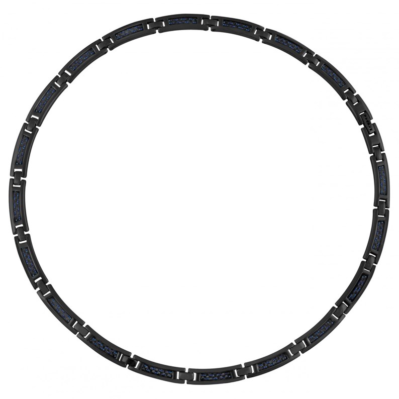 Un modèle résistant pour un look assumé : Notre collier Lélio en acier 316L inoxydable et PVD noir brillant est rehaussé de légers motifs en carbone bleu. Avec sa longueur de 50 cm pour une épaisseur d'1,5 cm, il profite d'une solide constitution. Il est doté d'un fermoir à mousqueton qui sécurise parfaitement l'ensemble autour de ton cou.