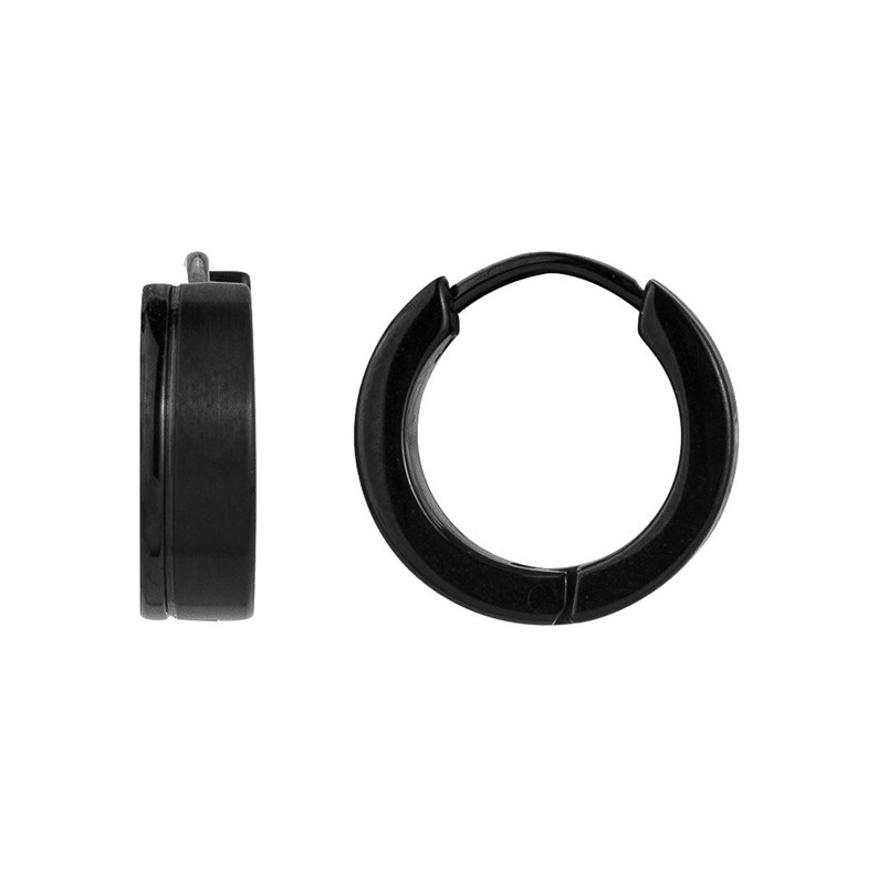 Créoles pour homme en acier 316L inoxydable PVD noir brillant : Les boucles d'oreilles Diego de Phebus peuvent être portées au quotidien, grâce à leur fabrication en acier inoxydable de haute qualité qui leur permet de résister dans le temps aux épreuves du quotidien. Ce bijou de couleur noire est garanti deux ans.