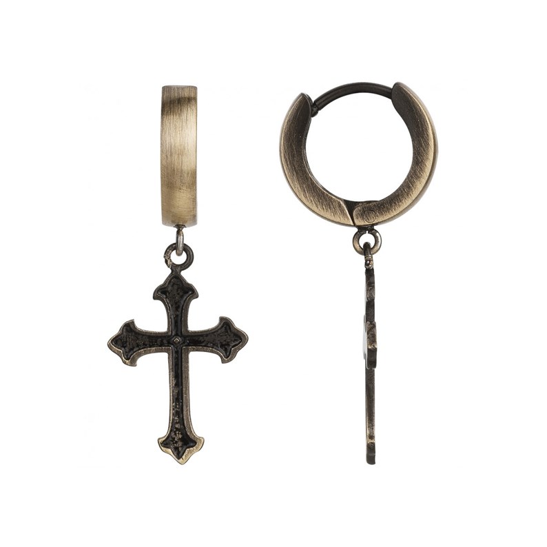 Créoles avec pendants croix gothiques en acier 316L inoxydable bronze et laque noire : Ce bijou a été conçu pour durer : garanti deux ans et fabriqué en acier inoxydable de qualité, il traverse les années sans s'abîmer. Son fermoir de type créole lui permet de rester bien en place à ton oreille.