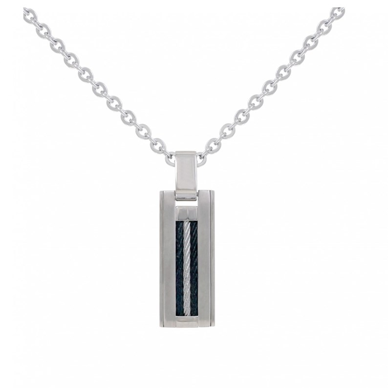 Un collier durable, moderne et harmonieux : Cette belle plaque accrochée sur une chaîne est composée d'acier 316L PVD gris brillant, un matériau inoxydable très résistant. Sa forme rectangulaire et son motif de câble noir et argenté en font un bijou attractif à l'allure mystérieuse. Un fermoir à mousqueton permet une fixation fiable.