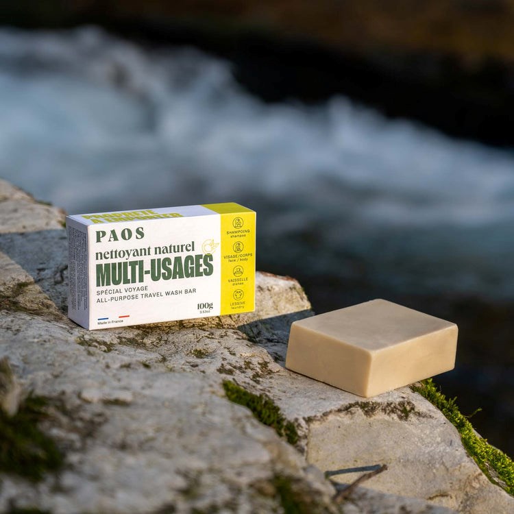 Nous avons imaginé une boite de transport légère et résistante, qui fait à la fois porte-savon, pour transporter vos solides et les conserver au mieux.