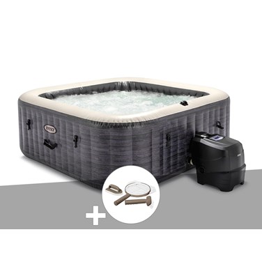 Kit spa gonflable intex purespa ardoise carré bulles 6 places + kit d'entretien