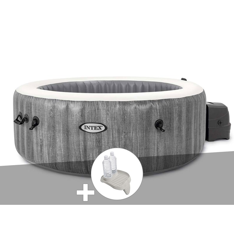 Kit spa gonflable intex purespa baltik rond bulles 4 places + porte-verre