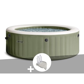 Kit spa gonflable intex purespa olive rond bulles 4 places + porte-verre