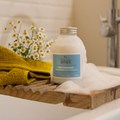 Verser peu à peu du bain moussant sous le jet d’eau de la baignoire jusqu’à obtenir une mousse abondante. Une petite quantité suffit,
