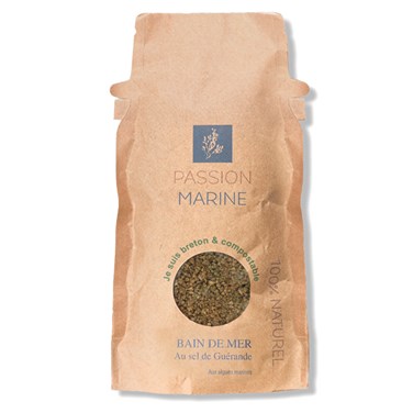 - Ce bain de mer est le fruit du terroir breton et de sa formidable biodiversité. Il est produit en circuit court avec du sel de Guérande (non traité, non raffiné) issu d'une coopérative locale, de l'eau de mer prélevée au large de Bréhat et des actifs à base d'algues marines.