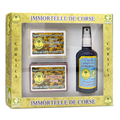 Coffret Savon aux Fleurs d'Immortelle BIO enrichie en Huile Essentielle d'Immortelle BIO 100g + Eau de Jouvence BIO à base d'eaux florales d'Immortelle, de Myrte et de Lentisque Pistachier 100ml origine Corse + Savon Myrte Corse enrichie en Huile Essentielle de Myrte BIO 100g