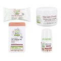 Ingrédients : SAVON CRÈME : Sodium Palmate**, Sodium Cocoate**, Aqua/Water/Eau, Glycerin**, Coco-Glucoside, Parfum (Fragrance), Sodium Chloride, Tetrasodium Glutamate Diacetate, Donkey Milk*, Citronellol, Limonene, Linalool. * Ingrédients Issus De L'Agriculture Biologique / Ingredient From Organic Farming ** Transformés À Partir D'Ingrédients Biologiques / Made Using Organic Ingredients CRÈME VELOUTÉE : Aqua /Water/Eau, Anthemis Nobilis Flower Water*, Isopropyl Palmitate, Glycerin, Butyrospermum Parkii (Shea Butter)*, Cocoglycerides, Olus/Vegetable Oil/Huile Vegetale, Glyceryl Stearate Citrate, Cetearyl Alcohol, Benzyl Alcohol, Donkey Milk*, Glyceryl Stearate Se, Bentonite, Parfum (Fragrance), Xanthan Gum, Hydrogenated Vegetable Oil, Sodium Benzoate, Lactic Acid, Candelilla Cera /Euphorbia Cerifera (Candelilla) Wax/Cire De Candelilla, Sodium Levulinate, Helianthus Annuus (Sunflower) Seed Oil, Tocopherol, Linalool, Aloe Barbadensis Leaf Juice Powder*, Benzyl Salicylate. * Ingrédients Issus De L'Agriculture Biologique / Ingredient From Organic Farming DOUCHE CRÈME : Aqua /Water/Eau, Cocamidopropyl Betaine, Glycerin, Helianthus Annuus (Sunflower) Seed Oil*, Decyl Glucoside, Glyceryl Stearate, Benzyl Alcohol, Sodium Chloride, Xanthan Gum, Butyrospermum Parkii (Shea) Butter*, Donkey Milk*, Sodium Benzoate, Parfum (Fragrance), Lactic Acid, Limonene, Linalool, Aloe Barbadensis Leaf Juice Powder*, Citronellol, Sodium Hydroxide. *Ingrédients Issus De L'Agriculture Biologique/Ingredients From Organic Farming. DÉODORANT DOUCEUR : Aqua /Water/Eau, Alcohol**, Propanediol, Triethyl Citrate, Polyglyceryl-3 Caprylate, Caprylyl/Capryl Glucoside, Glyceryl Caprylate, Parfum (Fragrance), Xanthan Gum, Candida Bombicola/Glucose/Methyl Rapeseedate Ferment, Donkey Milk, Zinc Pca, Sodium Benzoate, Bambusa Arundinacea (Stem) Extract, Aloe Barbadensis Leaf Juice Powder*, Lactic Acid, Mentha Viridis (Spearmint Leaf) Oil*, Limonene, Potassium Sorbate, Citronellol, Linalool.99% Du Total Des Ingrédients Sont D'Origine Naturelle25% Du Total Des Ingrédients Sont Issus De L'Agriculture Biologique.*Ingrédients Issus De L'Agriculture Biologique**Transformé À Partir D'Ingrédients Biologiques