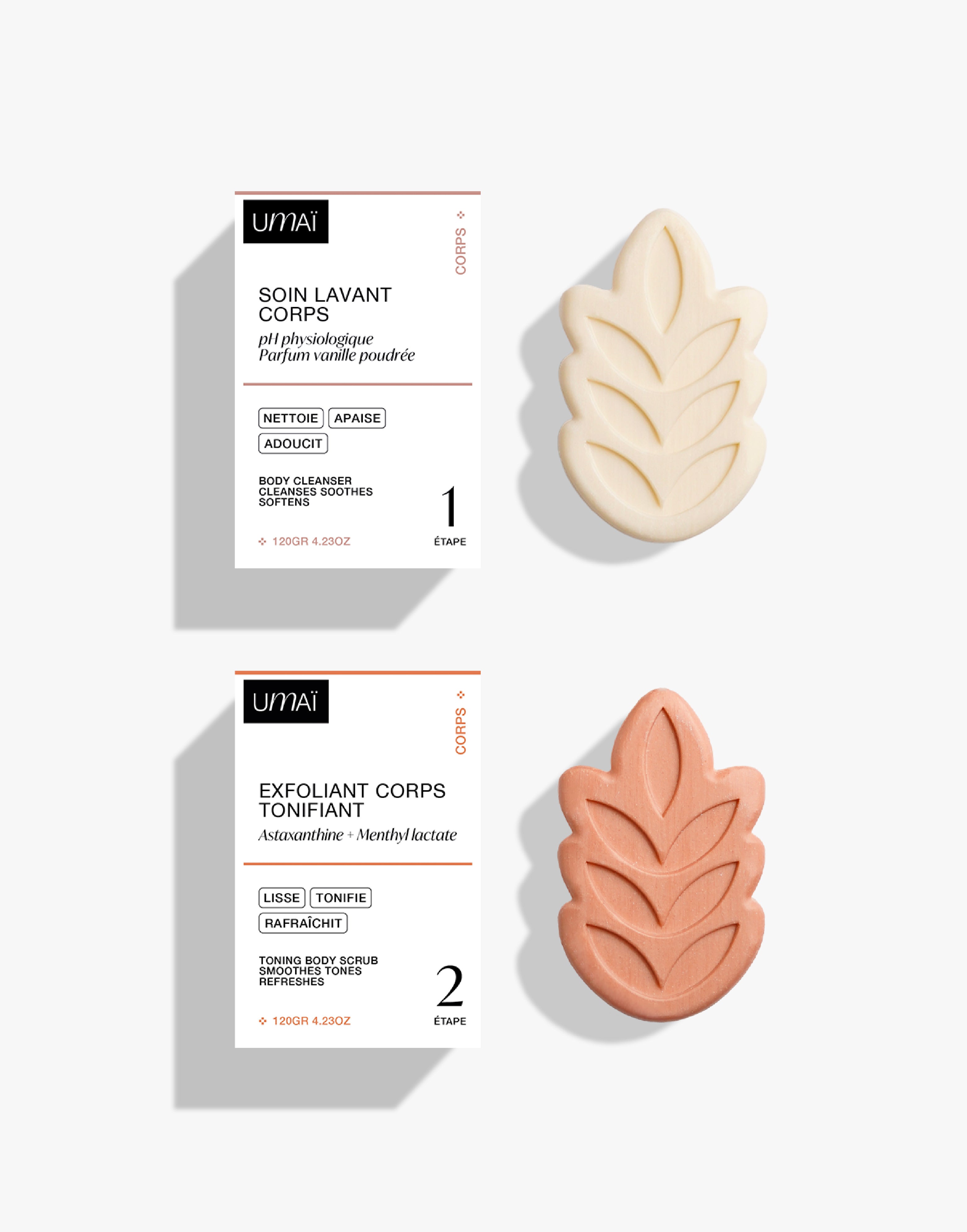 La routine corps réunit deux indispensables , un soin lavant ultra doux sans savon et un exfoliant sensoriel , pour nettoyer , exfolier et tonifier la peau en douceur , et lui offrir un toucher lisse , doux et confortable au quotidien .