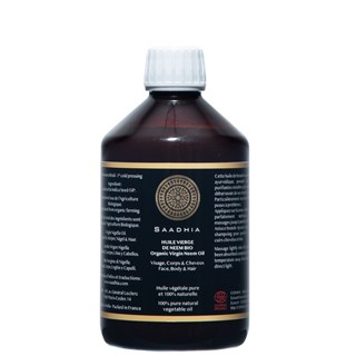 Notre huile de Neem Saadhia est pressée à froid en Inde. Elle est 100% pure, certifié bio, L’huile de Neem ne contient aucun conservateur, hexane ou autres produits chimiques.