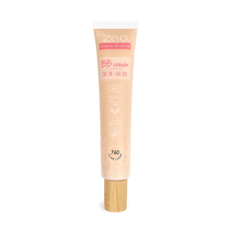 Notre BB crème est certifiée bio, vegan et à 99,67% d’origine naturelle. Elle est disponible en 3 teintes : 760 Clair, 761 Médium et 762 Hâlé. Grâce à sa texture légère, elle s’applique en fine couche sur une peau nue ou hydratée.