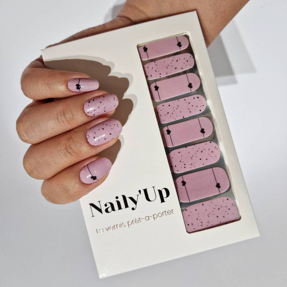 Vernis autocollant dream glaze - manucure facile longue tenue Rose mauve cœurs et confettis
