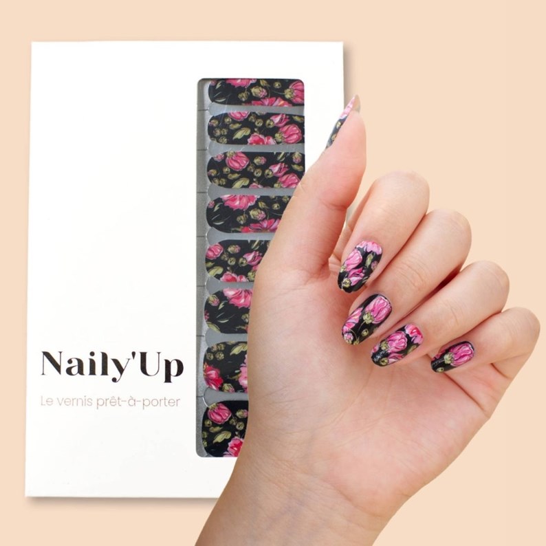 Vernis autocollant enchanted blooms - manucure facile longue tenue Noir fleuri