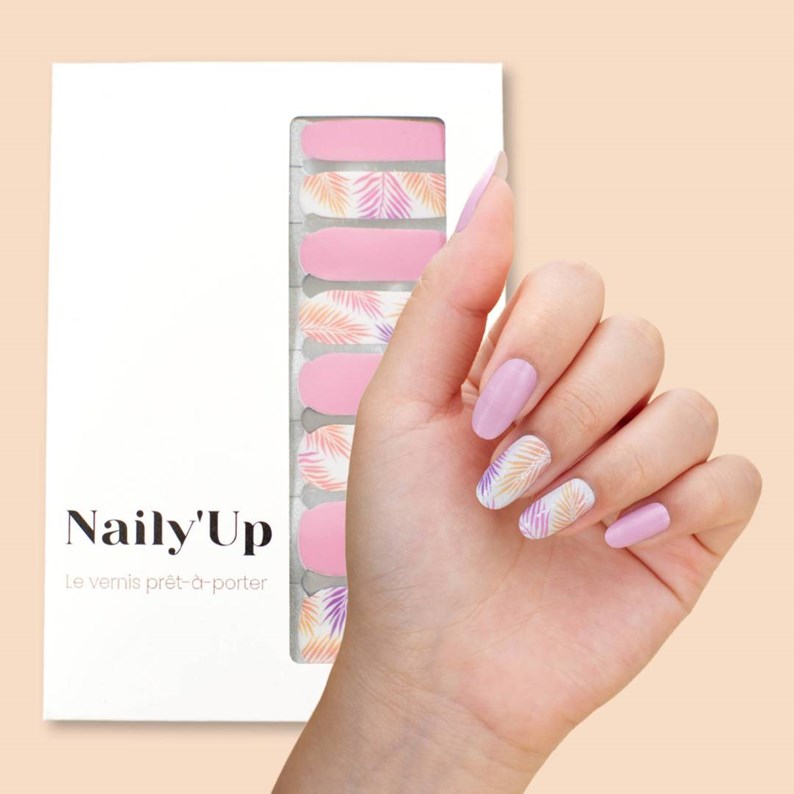 Vernis autocollant pink foliage - manucure facile longue tenue Rose tropicale