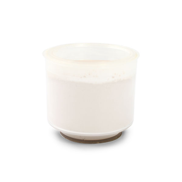 le couvercle du pot en bambou. Exercez une légère pression avec le pinceau kabuki, afin d’imprégner les poils de poudre. Appliquez le mineral silk sur le visage en faisant des mouvements circulaires.
