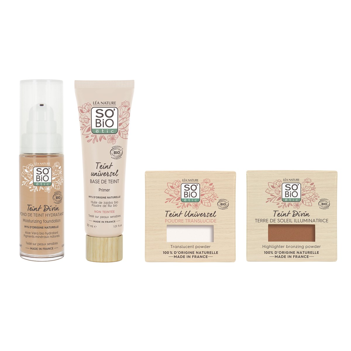 Le coffret pour sublimer votre teint comme un pro ! Fixer grâce à la base, unifier grâce au fond de teint, un fini velours avec la poudre translucide et une touche de poudre bronzante pour l'éclat.