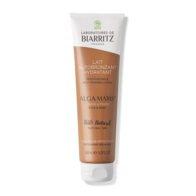 Le lait autobronzant hydratant assure une coloration uniforme et progressive pour un rendu lumineux et naturel. Sa formule, 100% d'origine naturelle, contient de l'Alga-Gorria®, un extrait breveté d'algue rouge issue de la côte basque, qui prévient le vieillissement cutané.