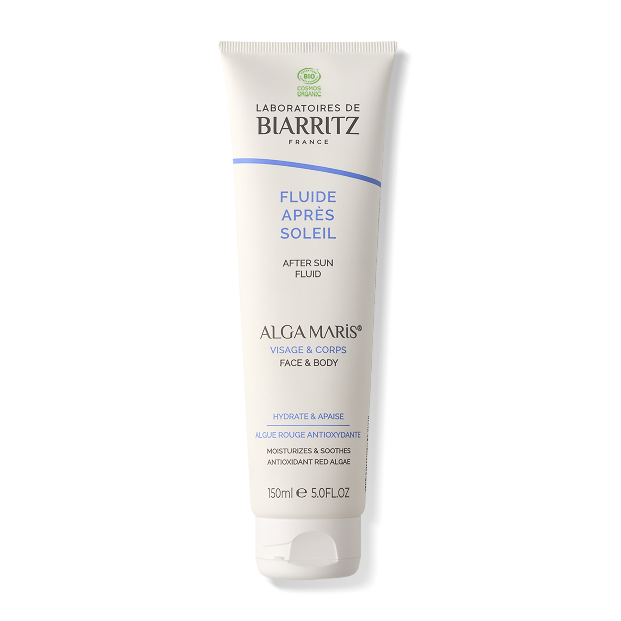 Grâce à sa texture spécifique ""gel-crème"", le fluide après-soleil visage et corps certifié bio hydrate la peau après l'exposition solaire procurant une sensation de fraîcheur et d'apaisement dès l'application. Les sensations de tiraillement et d'échauffement disparaissent, la peau retrouve confort et douceur.