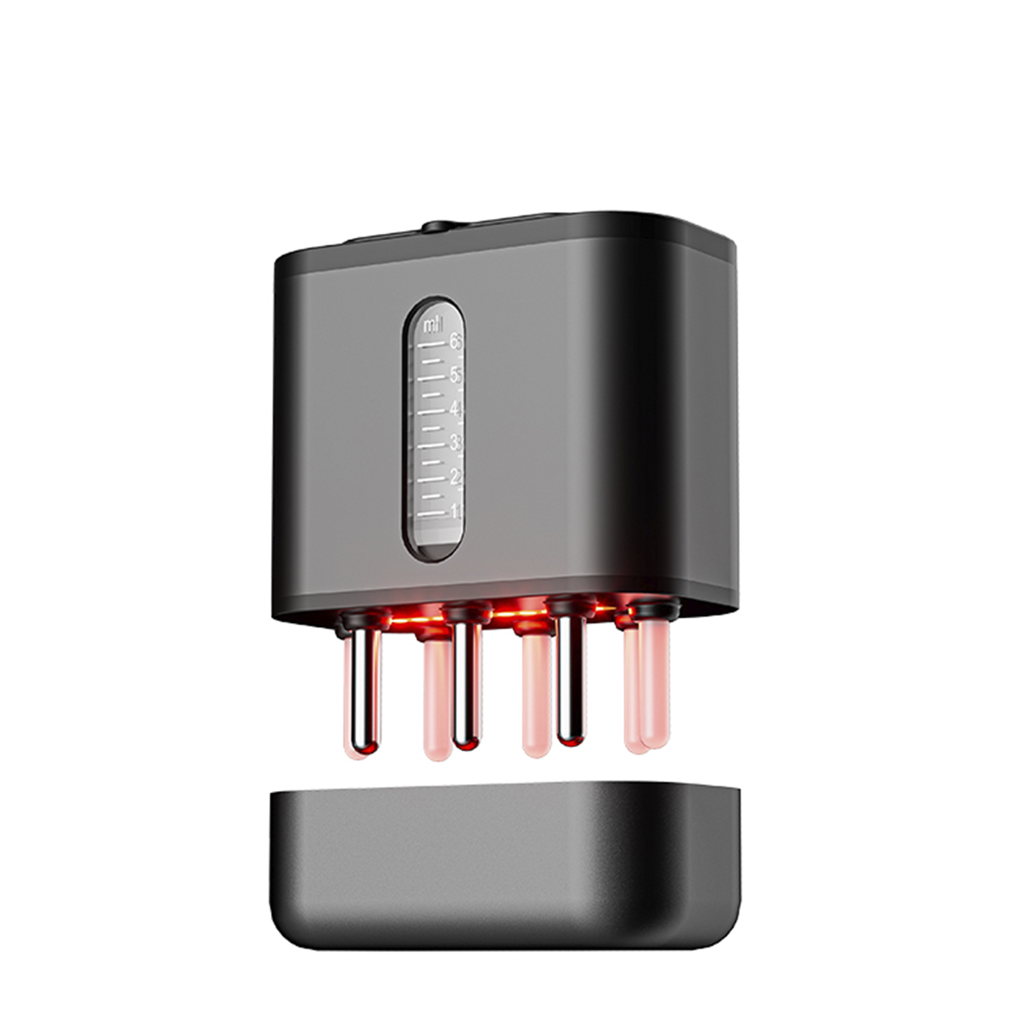 • Applicateur de lotion/médicament capillaire, réservoir de 6 ml. Corps en métal. • Traitement à la lumière rouge pour les cheveux, longueur d'onde de 610 à 630 nm, stimule la croissance des cheveux. • Poils en corne de vache. • Comprend un câble de chargement USB.
