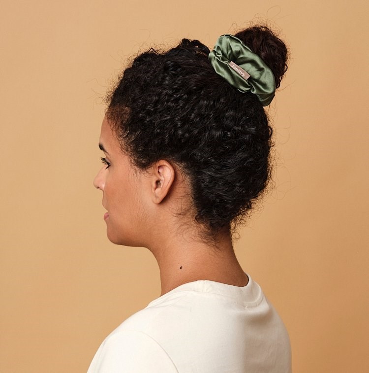 Chouchou en soie vert sauge 19 mo