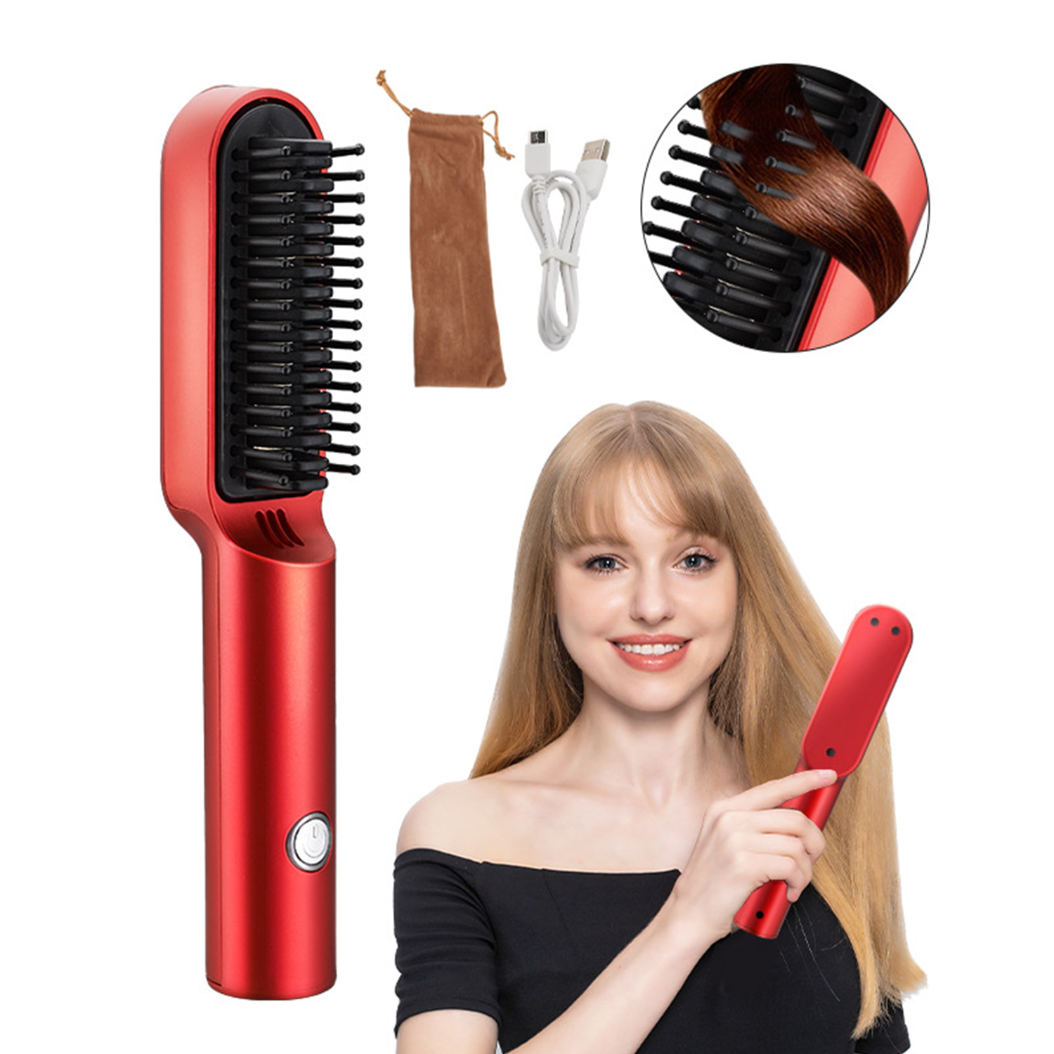 Peigne lissant JK610. • Le lisseur professionnel JK610 vous permet de créer facilement des styles droits, lisses et élégants. • Des millions d'ions négatifs peuvent résister efficacement aux problèmes électrostatiques des cheveux, reconstituer l'eau avec des soins capillaires hydratants, laissant vos cheveux plus brillants et plus sains. • La puce intelligente aux performances dignes d'un salon permet un chauffage rapide en 2 minutes environ (le voyant rouge deviendra bleu). Et la batterie rechargeable intégrée de 2 600 mAh peut être alimentée directement par chargement USB pour un fonctionnement sans fil et un plaisir continu et sans tracas. • Un bouton de commande facile vous permet d'allumer et d'éteindre avec un fonctionnement convivial, la conception anti-brûlure peut garantir la sécurité de fonctionnement en cas de dommages accidentels causés par la plaque chauffante. • Le corps profilé peut offrir des poignées ergonomiques et confortables, adaptées à une utilisation à la maison et en voyage pour vous offrir une coiffure agréable et sans effort.