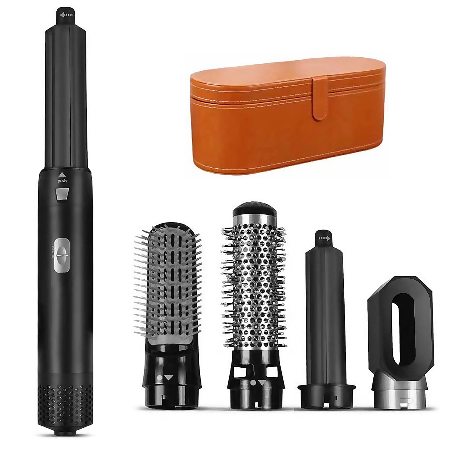 • Il comprend 5 accessoires, un sèche-cheveux, un peigne à air chaud pour cheveux lisses, un peigne à air chaud pour cheveux bouclés et deux têtes rotatives automatiques, une à droite et une à gauche. De plus, il comprend une trousse portable qui vous aidera à garder tout organisé et à faciliter encore plus son transport lorsque vous partez en voyage.