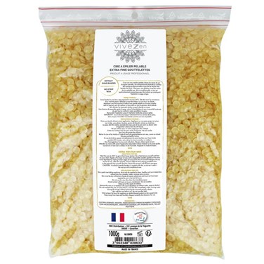 La cire à épiler Vivezen « Extra-fine », est une cire à base de résine naturelle de pin. Son estérification lui confère une extraordinaire souplesse et plasticité. Elle permet de réaliser des bandes très fines. Les cires pelables Vivezen sont des cires qui se retirent sans bandes, elles sont conseillées pour les épilations des peaux délicates et des zones sensibles comme le maillot, le visage et les aisselles. Cette cire n’est pas recyclable, et convient à tous les types de peaux. Sa fabrication est 100% Française, elle est conditionnée en sachet de 1 kg. Cette cire s’utilise avec un chauffe cire ou un chauffe pot, et est à base de résine naturelle de pin.