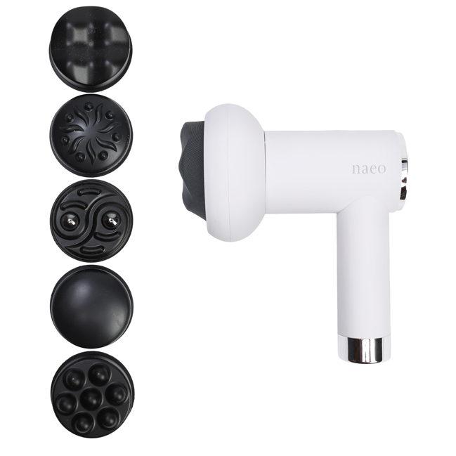 - 5 têtes de massage interchangeables : elles s'adaptent à toutes les zones du corps.