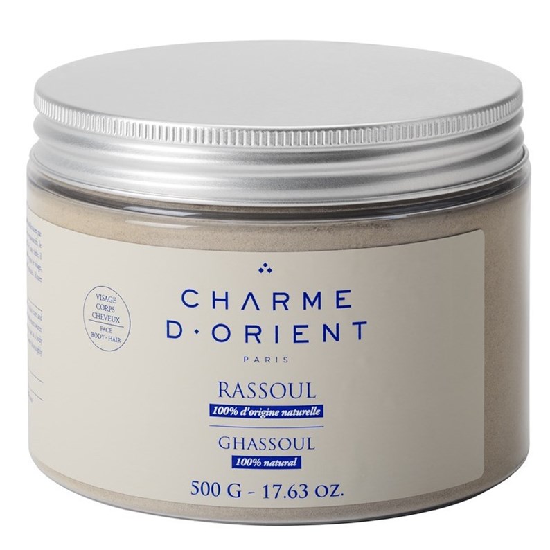 Le Rassoul, aussi appelé rhassoul ou ghassoul, est une argile minérale naturelle que l’on trouve dans le Maghreb. Il est utilisé, depuis l’Antiquité comme produit naturel d’hygiène et comme shampooing, par toutes les femmes d’Afrique du Nord. Son utilisation ancestrale provient de sa traduction littérale en arable qui signifie «qui lave». Le Rassoul Charme d'Orient est importé du Maroc et conditionné en France. Il fait partie du Rituel du Hammam avec le savon noir et le gant de Kassa. Il est utilisé pour les soins du corps, du visage et des cheveux. On dit qu'il s'utilise comme un masque « de la tête aux pieds ». Le rassoul nettoie la peau et les cheveux en douceur du fait de l'absence de tensioactif. Conseils beauté : Pour former une pâte très douce, mettre dans une coupelle deux cuillères à soupe de rassoul et un peu d'eau ou de l'eau distillée de Rose ou de Fleur d'Oranger. Mélanger ensuite jusqu’à l’obtention d’une pâte homogène. Appliquer en couche fine sur tout le corps ou sur les racines des cheveux et laisser agir 5 à 10 minutes, puis rincer abondamment.Résultat : Une peau propre et purifiée.Précautions d'emploi : Eviter le contour des yeux. Ne pas avaler.