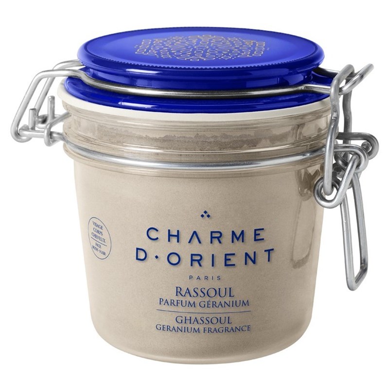 Le Rassoul, aussi appelé rhassoul ou ghassoul, est une argile minérale naturelle que l’on trouve dans le Maghreb. Il est utilisé, depuis l’Antiquité comme produit naturel d’hygiène et comme shampooing, par toutes les femmes d’Afrique du Nord. Son utilisation ancestrale provient de sa traduction littérale en arable qui signifie «qui lave». Le Rassoul parfum Géranium Charme d'Orient est importé de Tunisie et conditionné en France. Il fait partie du Rituel du Hammam avec le savon noir et le gant de Kassa. Il est utilisé pour les soins du corps, du visage et des cheveux. On dit qu'il s'utilise comme un masque « de la tête aux pieds ». Le rassoul nettoie la peau et les cheveux en douceur du fait de son absence de tensioactif. Conseils beauté : Pour former une pâte très douce, mettre dans une coupelle deux cuillères à soupe de Rassoul parfum Géranium et un peu d'eau ou de l'eau distillée de Rose ou de Fleur d'Oranger. Mélanger ensuite jusqu’à l’obtention d’une pâte homogène. Appliquer en couche fine sur tout le corps ou sur les racines des cheveux et laisser agir 5 à 10 minutes, puis rincer abondamment.Résultat : Une peau propre et purifiée.Précautions d'emploi : Eviter le contour des yeux. Ne pas avaler.