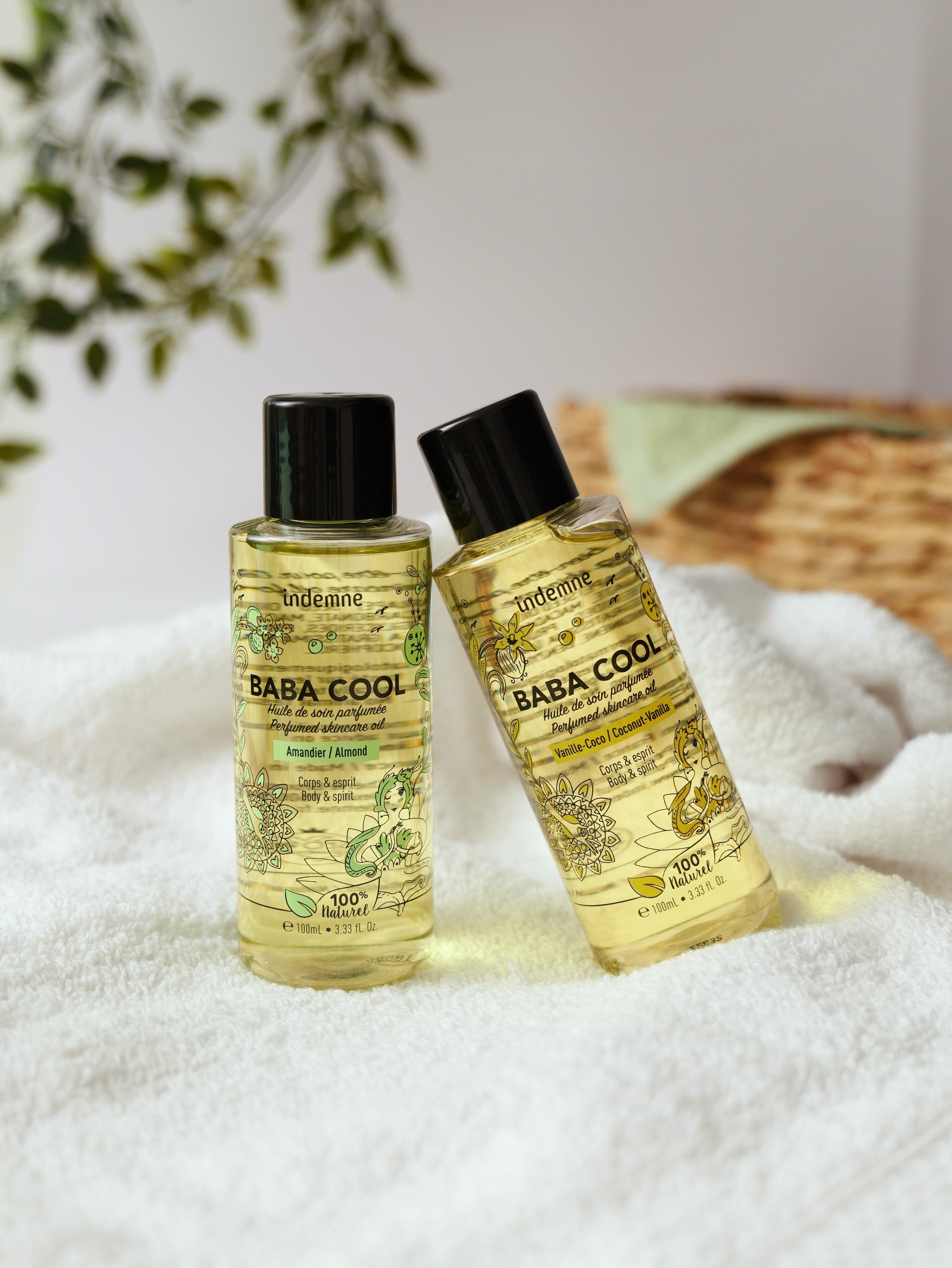 Les huiles de soin BABA COOL apportent de nombreux bienfaits à votre peau : nourrissantes, assouplissantes, sublimantes, parfumantes et fortifiantes grâce au doux mélange des huiles d’Avocat, de Pépins de raisin, de Macadamia ou encore d’Amande douce, riches en Vitamine E, Oméga 3 et 6 et Antioxydant.