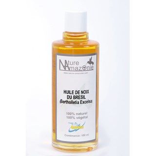 L'huile de noix du Brésil (Bertholletia Excelsa) -ou Châtaigne d'Amazonie- contient des vitamines liposolubles comme les vitamines A et E, qui sont indispensables à la protection de la peau, évitant son vieillissement et l'apparition des rides et de la flaccidité. Avec des propriétés émollientes et hydratantes, forme une pellicule protectrice, empêchant l'évaporation de l'eau de la peau. Appelée aussi châtaigne du Para (un état brésilien d'Amazonie où se fait l'essentiel de la récolte), la noix du Brésil se consomme souvent sous forme d'amandes salées à l'apéritif. C'est une ressource importante pour les communautés forestières d'Amazonie.