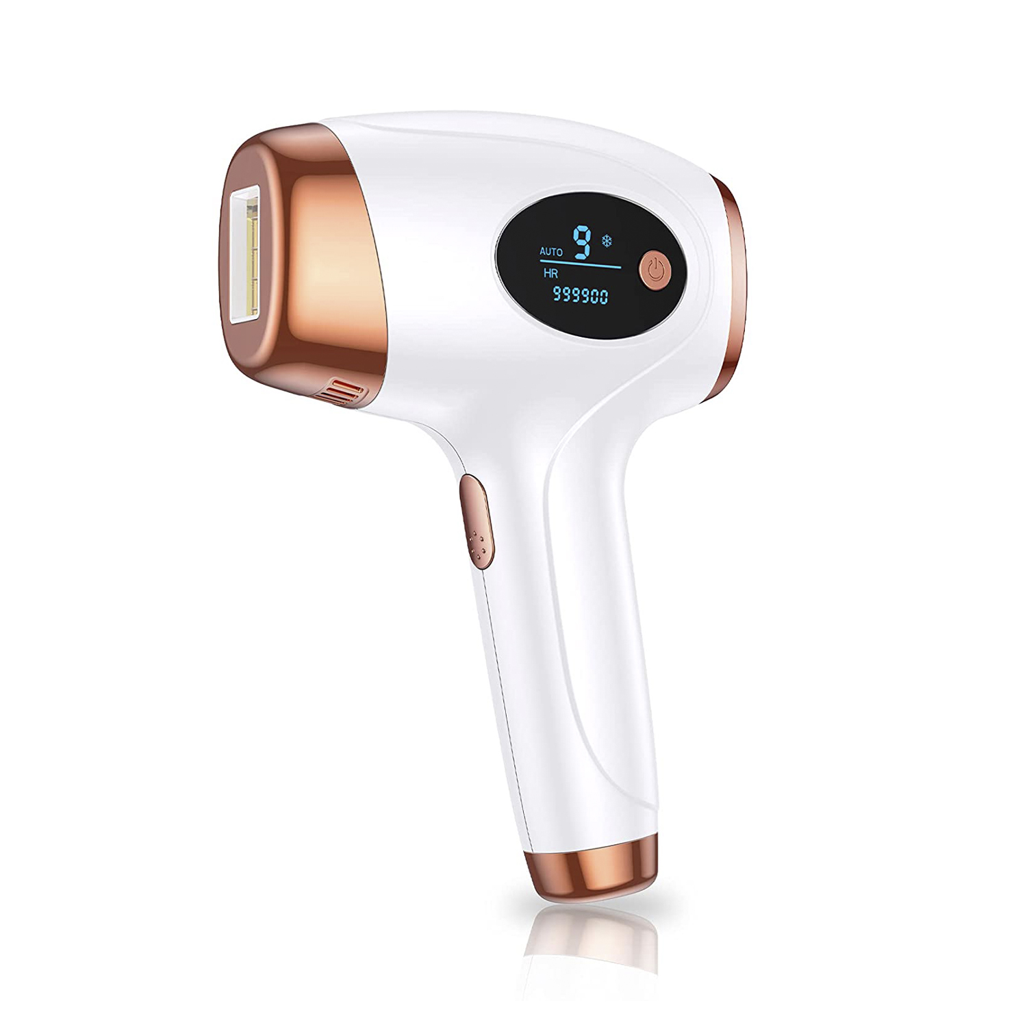 Épilateur à lumière pulsée Ts8 • Technique d'épilation IPL : la lumière pulsée IPL pénètre profondément dans les follicules pileux, puis les follicules pileux rétrécissent progressivement sous la lumière et la chaleur, les cheveux tombent naturellement et poussent lentement, exposition Interruption prolongée et à long terme des cheveux croissance. • Réglage de l'intensité par interrupteur tactile et fonction de refroidissement, précis et puissant, avec jusqu'à cinq niveaux d'intensité, disponibles pour l'ensemble du corps. • Dites adieu aux répétitions, sans douleur et sans agresser la peau, facile à manipuler, idéal pour les poils épais et rêches. • Il dispose d'un affichage numérique LED, d'une protection contre la mise hors tension automatique et d'une durée de vie utile allant jusqu'à 990 000 flashs. • 2 modes d'utilisation : épilation manuelle et automatique.