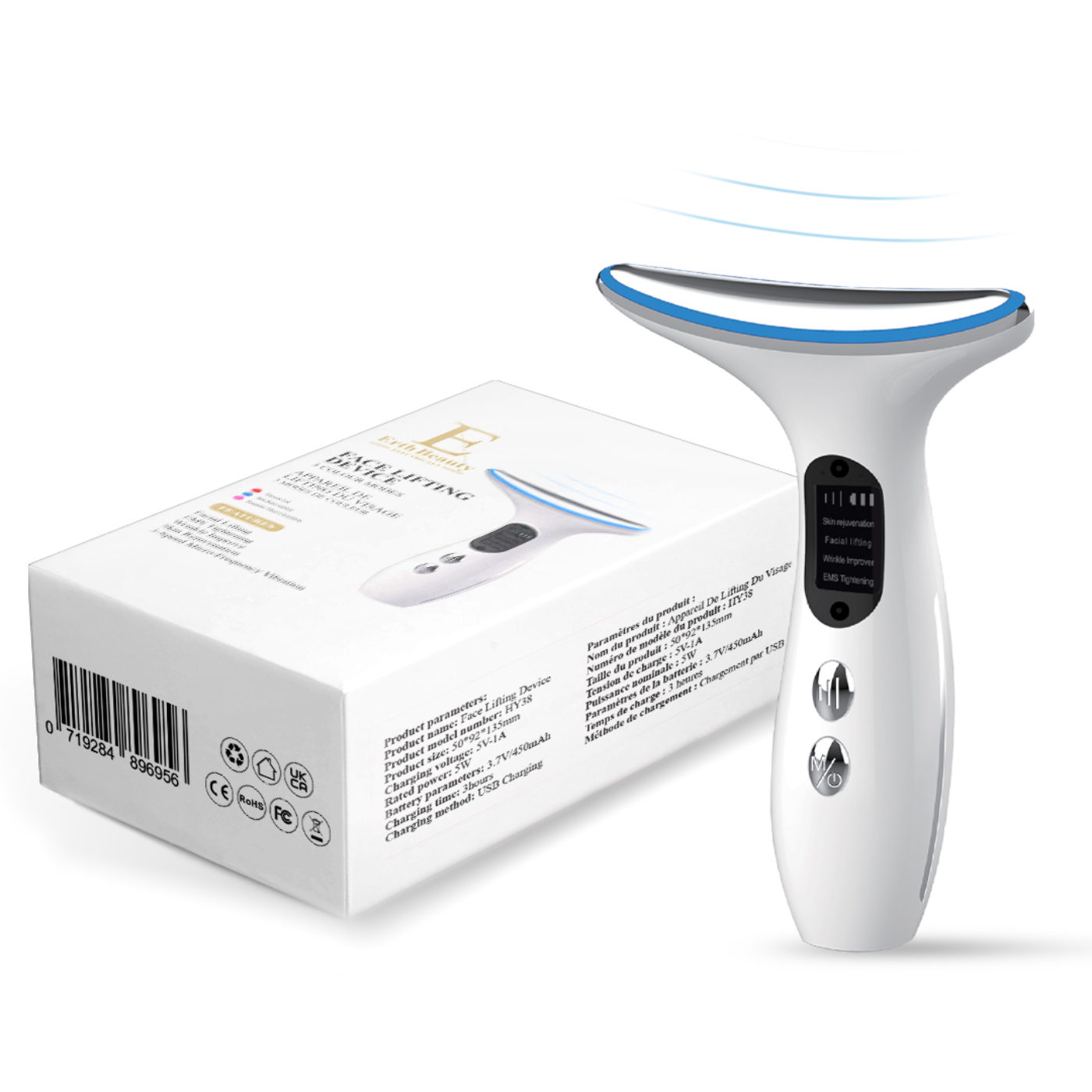 Technologie à microcourant : elle stimule les muscles du visage, favorisant une apparence plus ferme et plus tonique.