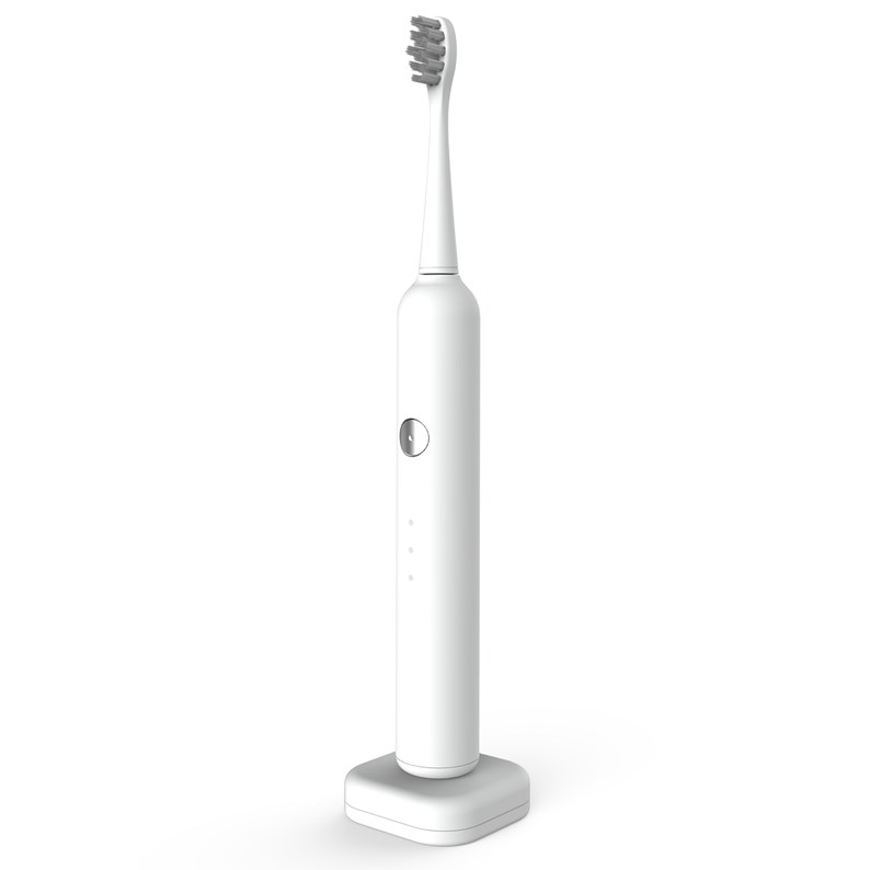 Brosse à dents électrique avec batterie rechargeable : • Fréquence de vibration jusqu'à 37 200 tours par minute. 3 modes d'utilisation : nettoyage, dents sensibles et éclaircissement. 2 intensités par mode. • Nettoyage intelligent en 4 zones, avec des pauses toutes les 30 secondes. Un programme total de 2 minutes, une durée recommandée par les experts en santé bucco-dentaire. • Corps lavable sous le robinet. • Chargement sans fil inductif, avec base de chargement USB. • Comprend 3 têtes.