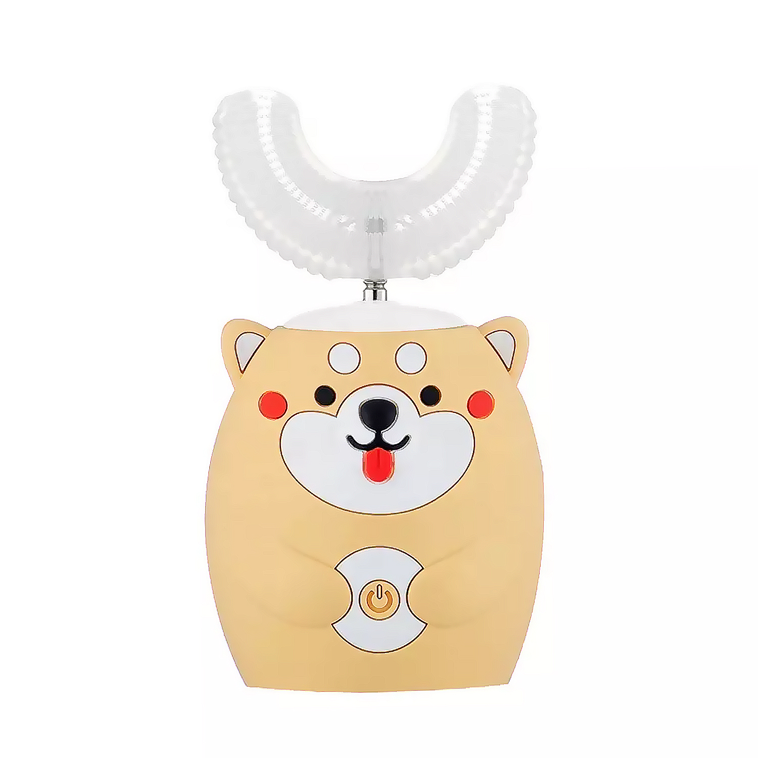 Brosse à dents électrique en forme de U pour enfants. • Mode vibration douce, conçu pour les plus petits de la maison et comme fonction de massage oral. • Fabriqué en silicone antibactérien de qualité médicale. Poils antibactériens, avec nettoyage à 45°. • Arrêt automatique après 60 secondes de brossage. 5 modes de fonctionnement pour un nettoyage en profondeur. • Comprend une lumière bleue antibactérienne, aide au blanchiment. • Résistance à l'eau IPX7 (immersion déconseillée). • Chargez via le câble USB inclus. Autonomie de la batterie jusqu'à 20 jours. • Conception en forme d'ours.
